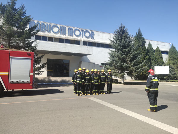 老虎屯消防中隊到萬寶至萬達工作現(xiàn)場做模擬實戰(zhàn)演習(xí)