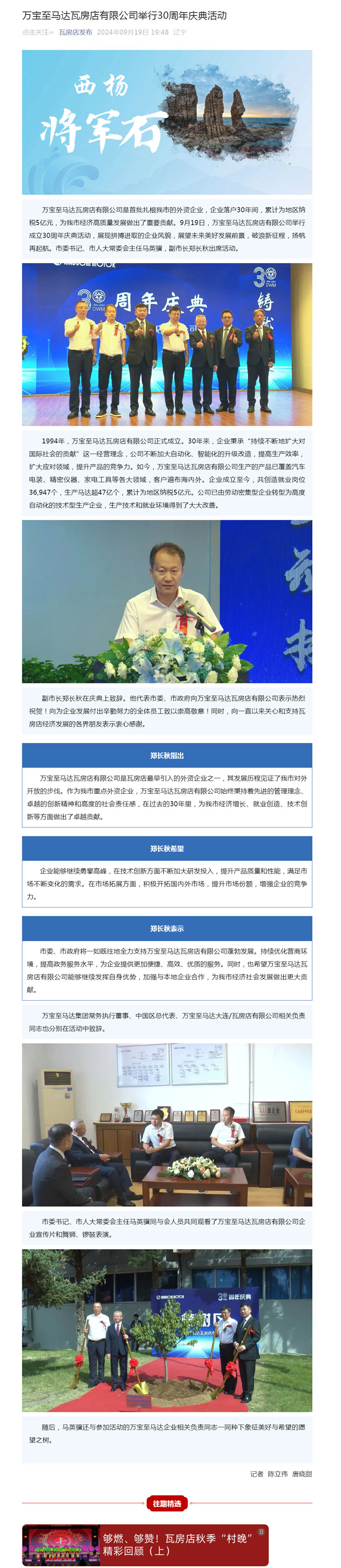 萬寶至馬達(dá)瓦房店有限公司舉行30周年慶典活動(dòng)